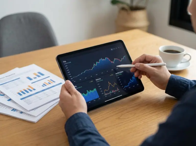 Avaliar se um protocolo DeFi está realmente expandindo exige olhar para além de uma única métrica. O Total Value Locked, conhecido como TVL, é frequentemente a primeira cifra que aparece em agregadores de dados, mas isoladamente ele conta uma história incompleta. Um protocolo pode acumular TVL temporariamente através de programas de incentivos agressivos que atraem liquidez passageira — recursos que desaparecem assim que os rendimentos subsidiados terminam.